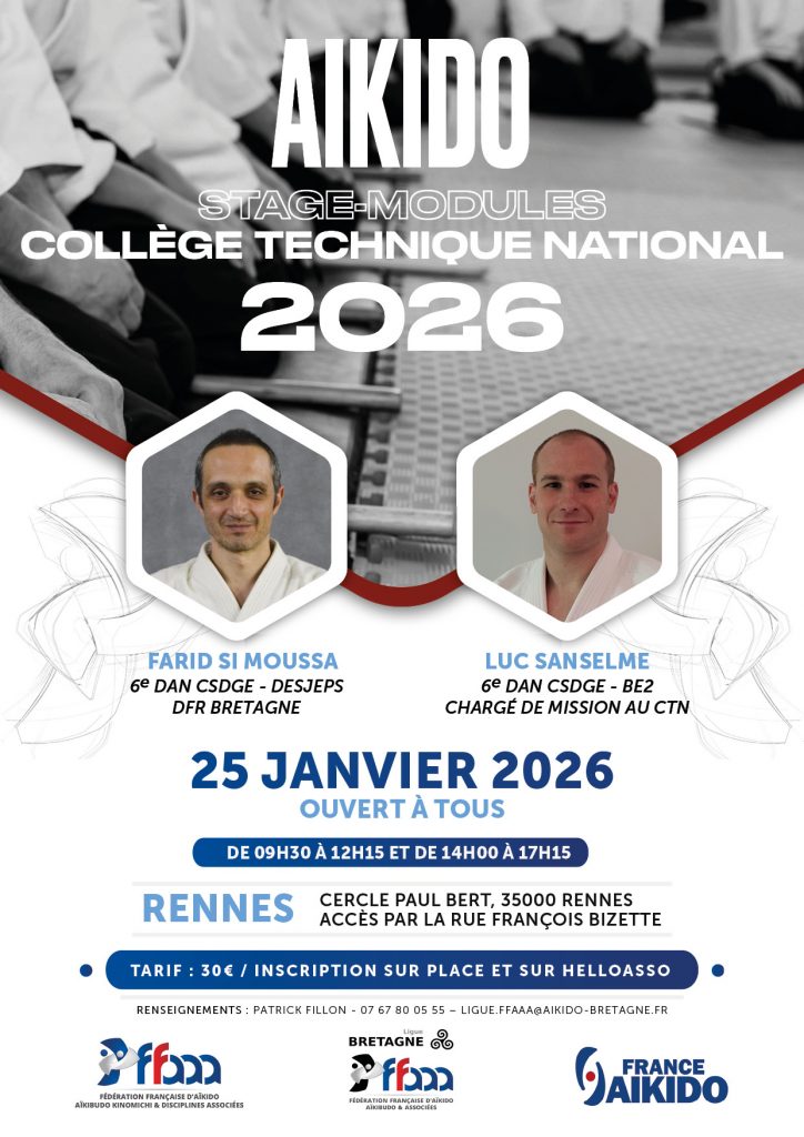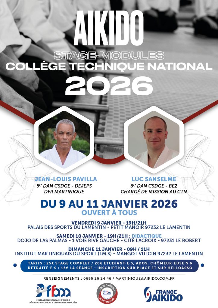 Pensés comme un espace de pratique technique ouvert à tous les licenciés et de réflexion pédagogique partagée, les stages-modules s’articulent autour de grandes thématiques du travail en aïkido (qualités physiques, chutes, kihon, koshi nage), avec une attention particulière portée aux besoins locaux.